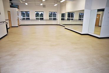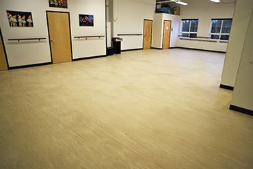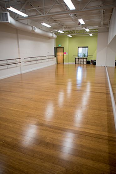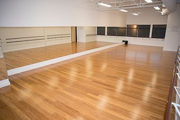 At Reflections, both of our studios are equipped with special sub floor pads underneath their flooring, making them shock absorbent and healthy for our dancers' feet and bodies. Studio A has a bamboo real hardwood floor and Studio B has 2 layers of 1/2" quality grade plywood and then a dance vinyl (Marley).