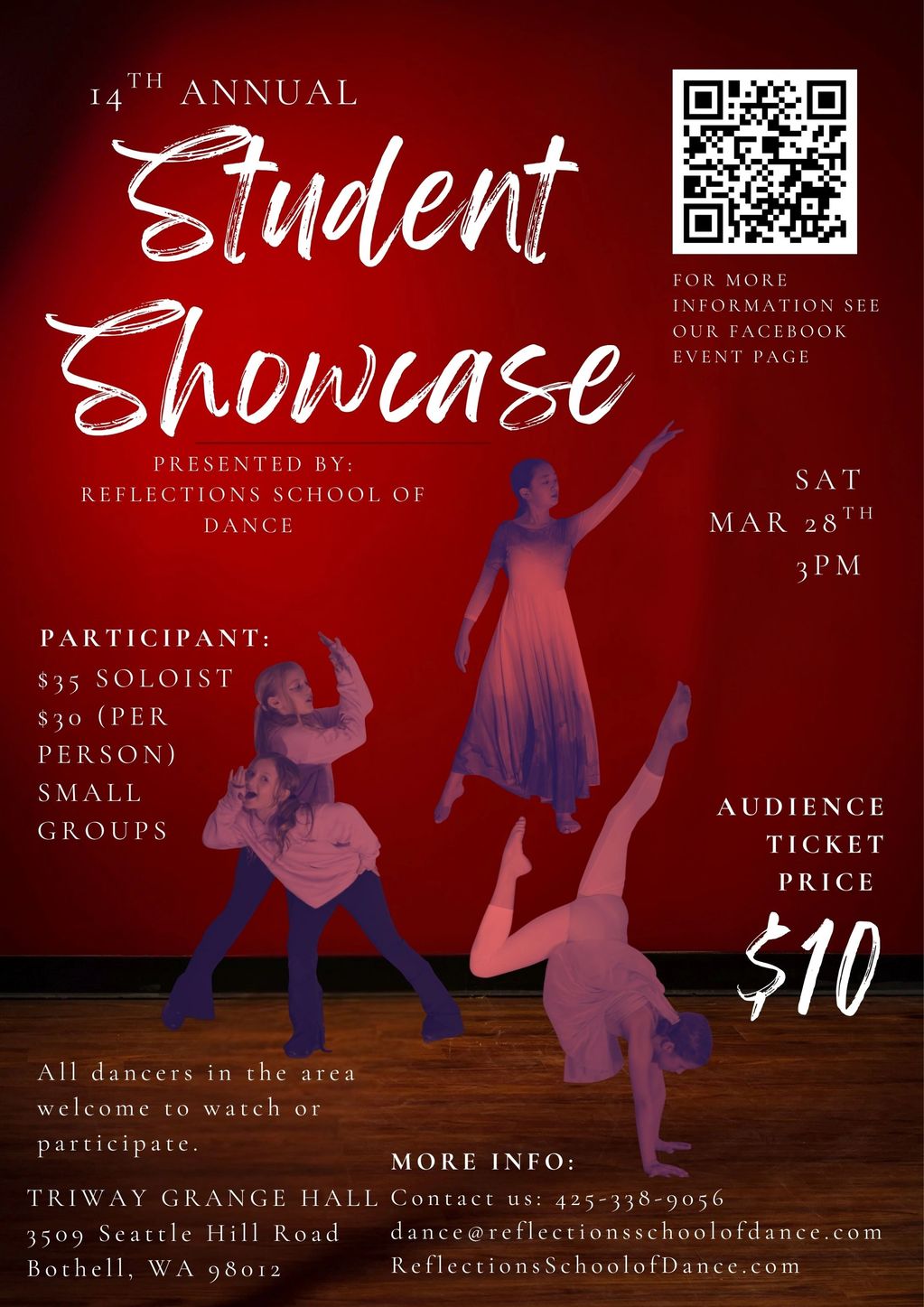 This event is an exciting opportunity for students to dance in a small group or as a soloist and also help raise funds for our May Benefit show "Celebrate Life," Youth Unlimited scholarship fund & outreach projects. This project is to be student-led and choreographed. This opportunity benefits dancers in many ways - it builds confidence, leadership skills, choreography experience, and teamwork. Cl